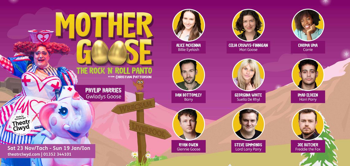 Theatr Clwyd earlier this year announced that their Rock ‘n’ Roll panto this year would be Mother Goose. With 16,000 tickets already booked the legendary panto is a tradition for many across North Wales. Today the venue has announced the full cast with many returning favourites.