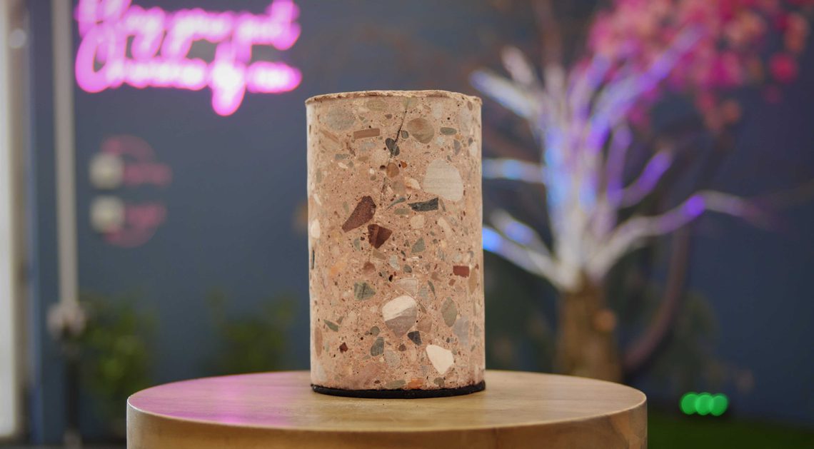 As part of the redevelopment, we are adding a new air handling system to the building and all theatre spaces, improving ventilation and comfort. To do this the builders have removed concrete cylinders from the main theatre, and we have collected these so now you can own part of Theatr Clwyd.